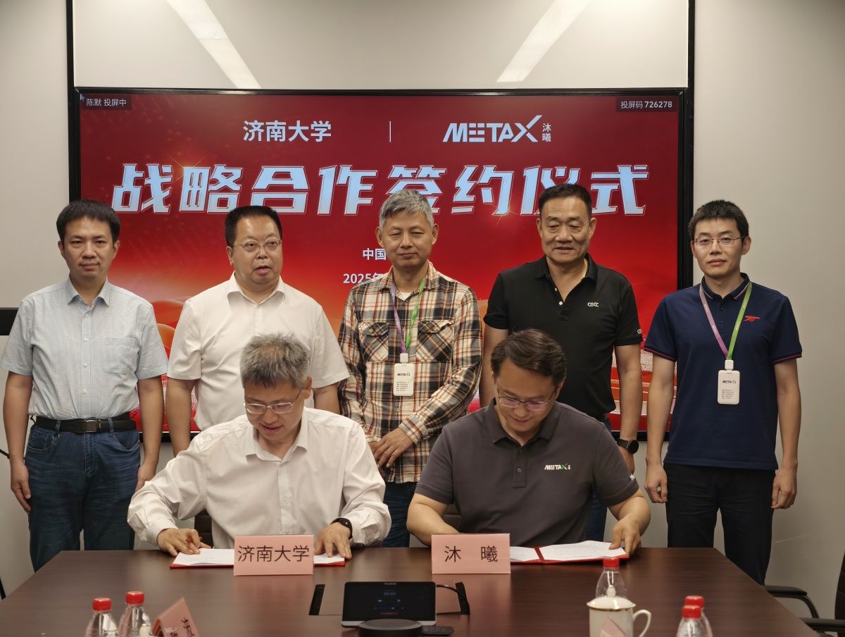 会前,济南大学一行参观了沐曦集成电路发展历程。沐曦公司专注于高性能GPU芯片研发,在人工智能迅猛发展而国产高端芯片面临技术壁垒的背景下,已成功推出全栈GPU芯片产品,在全国部署10大算力集群,为智算、通用计算、云渲染等前沿领域提供高能效、高通用性的算力支撑,助力数字经济发展。本次合作将有效整合济南大学的教学科研力量和沐曦的产业优势,进一步推动人才链、教育链、产业链、创新链深度融合,实现校企双方多层面的合作共赢。