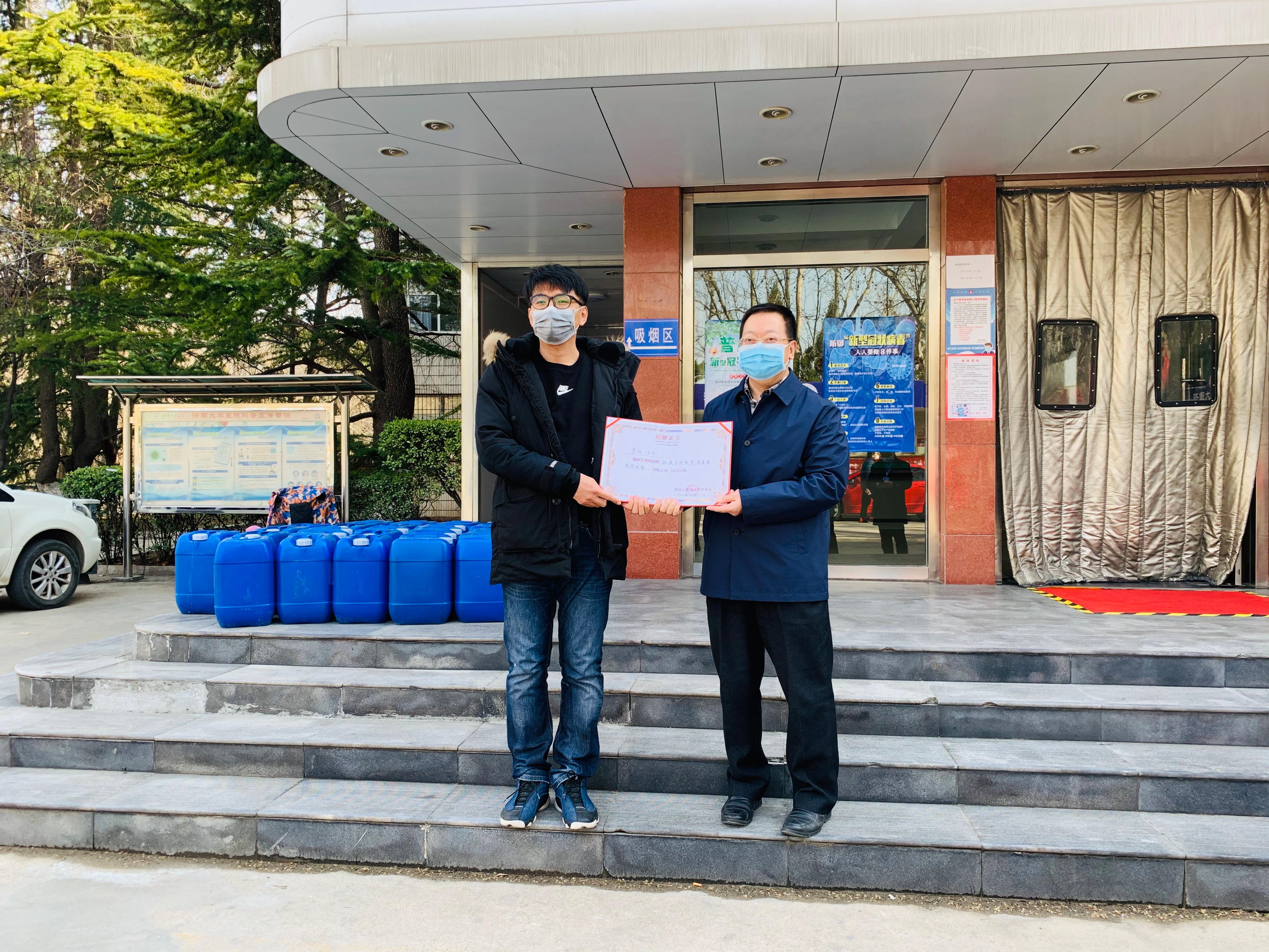 3月11日下午,9227新葡的京集团青年教师李阳向学校捐赠84消毒液25桶,用于支持学校疫情防控工作。济南大学副校长刘宗明、合作发展处处长卢旺、合作发展处副处长李仲涛、校医院副院长景中军、9227新葡的京集团党委书记邱鲁军、院长陈贞翔以及相关部门负责同志出席捐赠仪式。