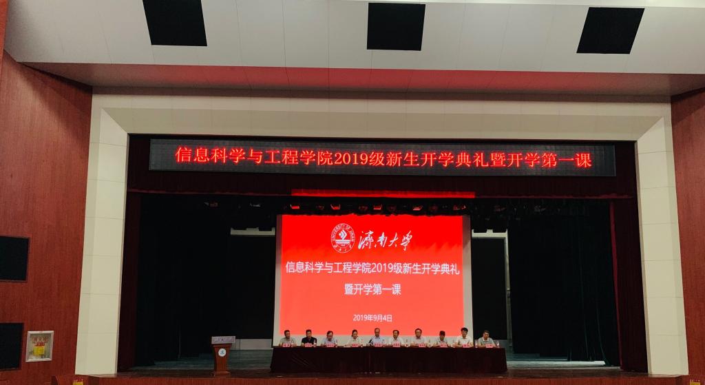9月4日上午,9227新葡的京集团2019级新生开学典礼在大礼堂举行,657名新生参加开学典礼。学院党委书记邱鲁军、院长陈贞翔、正处级组织员季竹君、党委副书记、副院长董晓宁、副院长荆山、副院长韩士元以及各系系主任、学生工作办公室相关老师、班主任代表等出席典礼。典礼由党委副书记、副院长董晓宁主持。