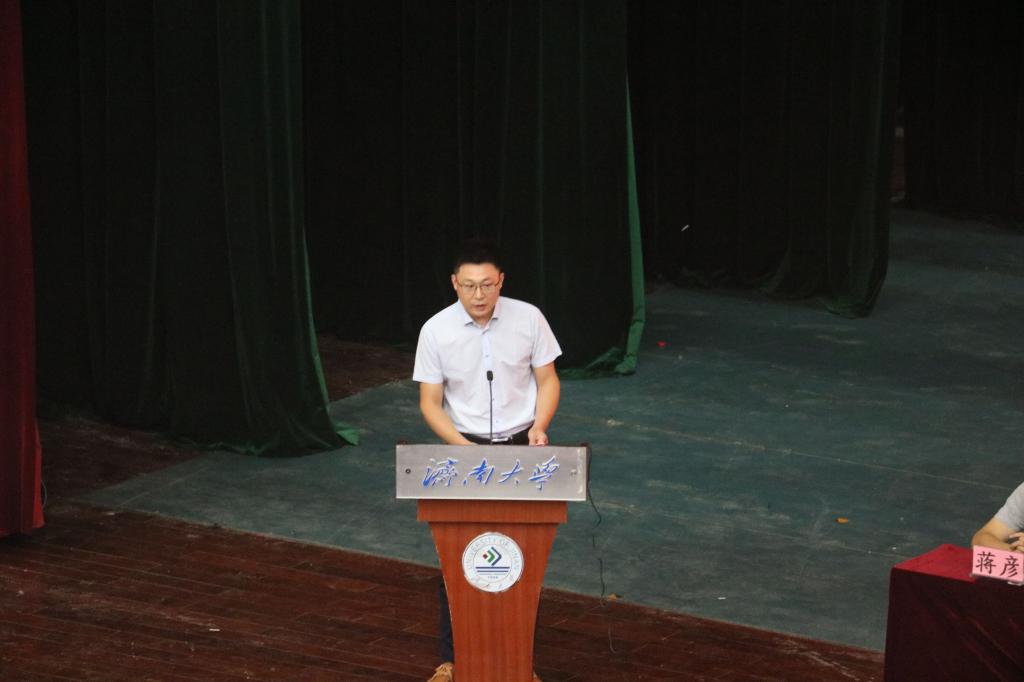 随后,优秀教师代表牛四杰展现了新葡的京教师的风采。他指出,由一名信息学院的新生,真正成长为“弘毅博学、求真至善”的“济大人”,是需要大家用未来四年,甚至更长时间来努力完成的。并对新生提出四点建议,一是志存高远,树立目标;二是脚踏实地,认真做好每一件事;三是积极面对各种挫折;四是心存感恩,走好未来的人生道路。2016级优秀学生代表杨昊晨代表老生发言,并与在座的学弟学妹分享了该用怎样的心态去迎接济大生活。2019级网络工程专业宋润斐同学代表新生发言,她表示将努力做一个思想品质过硬,学习成绩过硬,责任担当过硬的新时代接班人,书写无愧于时代的壮丽篇章,以优异成绩为母校增光添彩,为社会贡献力量。