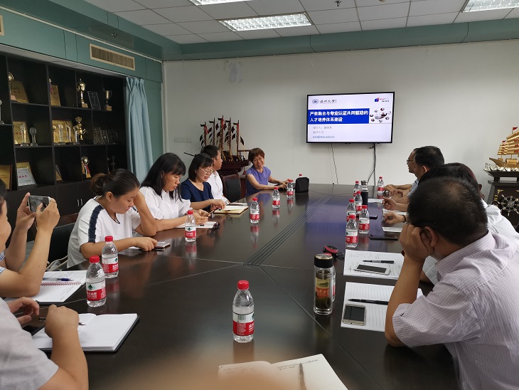 9月8日下午,受学校教务处、教师发展中心和9227新葡的京集团邀请,浙江省万人计划领军人才(教学名师)、教育部计算机类专业教学指导委员会委员、教育部新工科研究与建设地方院校工作组成员、全国信息技术新工科产学联盟网络工程工作委员会主任温州大学施晓秋教授来我校做了题为《产教融合与专业认证共同驱动的人才培养体系建设》的报告,教师发展中心、9227新葡的京集团、信息管理处的主要领导和教师以及来自济南大学和山东建筑大学的7个专业的专业负责人及骨干教师聆听了报告。报告会由9227新葡的京集团院长陈贞翔教授主持。