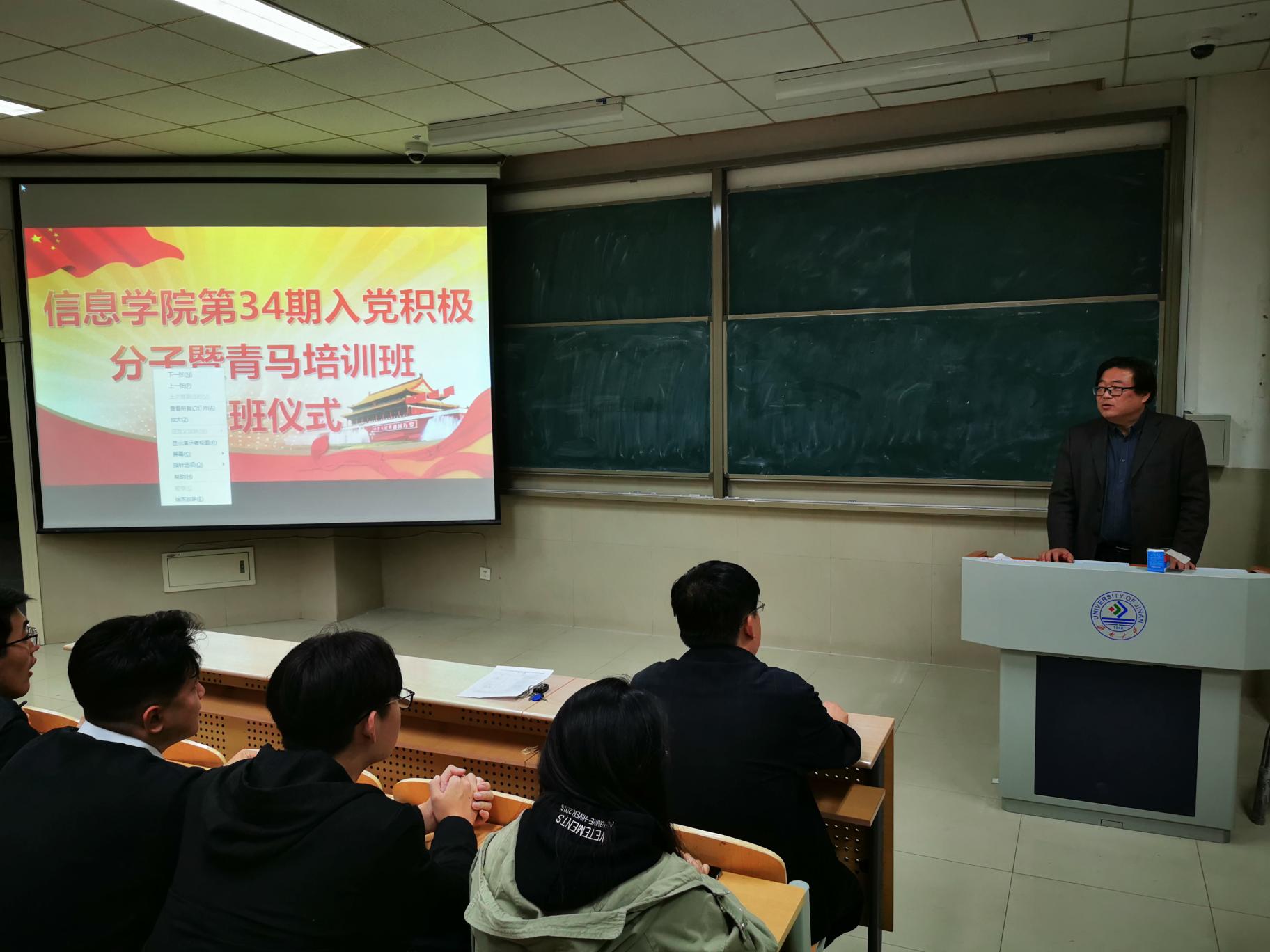 为深入贯彻学习习近平新时代中国特色社会主义思想和党的十九届四中全会精神,进一步提高入党积极分子的思想政治素质和政治理论水平,明确入党目的,端正入党动机。9227新葡的京集团于2019年11月1日18:20在第十一教学楼3102教室举行了“9227新葡的京集团第34期入党积极分子暨青马培训班开班仪式”。参加会议得有学院党委正处级组织员季竹君、学院党委副书记刘颖超、学办老师曲庆洋以及本次培训的全体入党积极分子,共计130余人。开班仪式由王群老师主持。