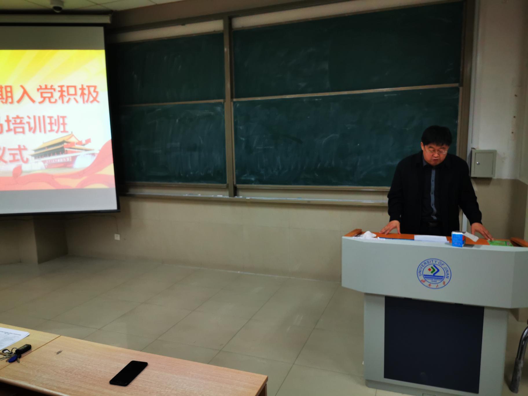 典礼伊始,学院正处级组织员季竹君同志作动员报告。他从“端正入党动机、党员的要求、践行自身价值、提高道德情操修养”等方面,阐述了举办入党积极分子培训班的重要意义,和成为一名党员所要具备的素质和条件。作为一名入党积极分子,要树立正确的世界观、人生观和价值观,端正入党动机,认真学习党的基本知识、基本理论,不断提升自我,发展自己。他希望各位同学通过此次培训,进一步明确入党动机,坚定理想信念,将培训作为一个新的起点,用党员的标准严格要求自己;珍惜培训机会,能够学有所思,学有所成,早日加入党组织。