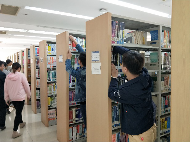 本次志愿服务活动,信息学院研究生第二党支部18名党员积极参与,同学们认真服务,将图书馆501室书架上的书摆放整齐,并进行了图书分类,将放错位置的图书放回原处。