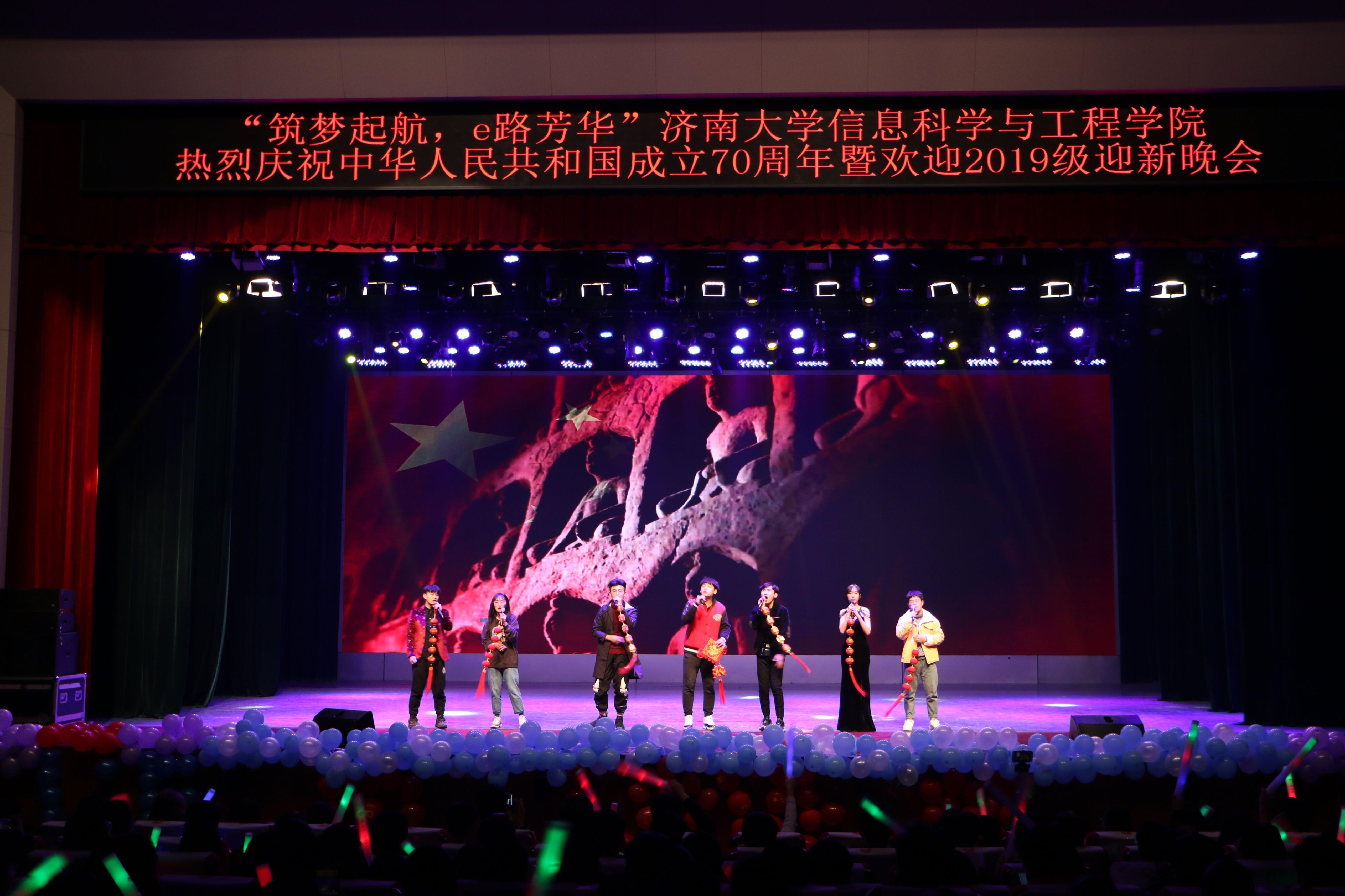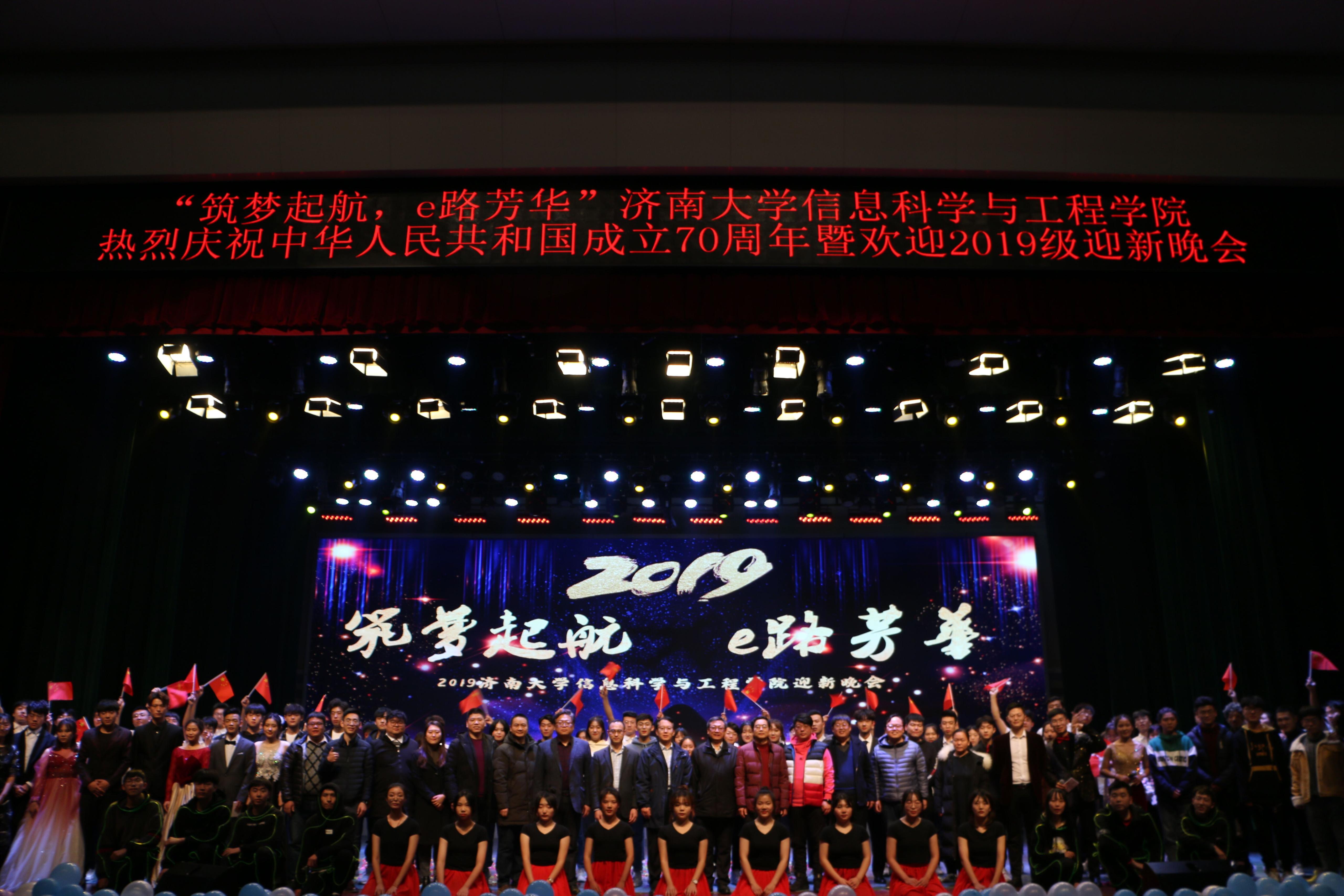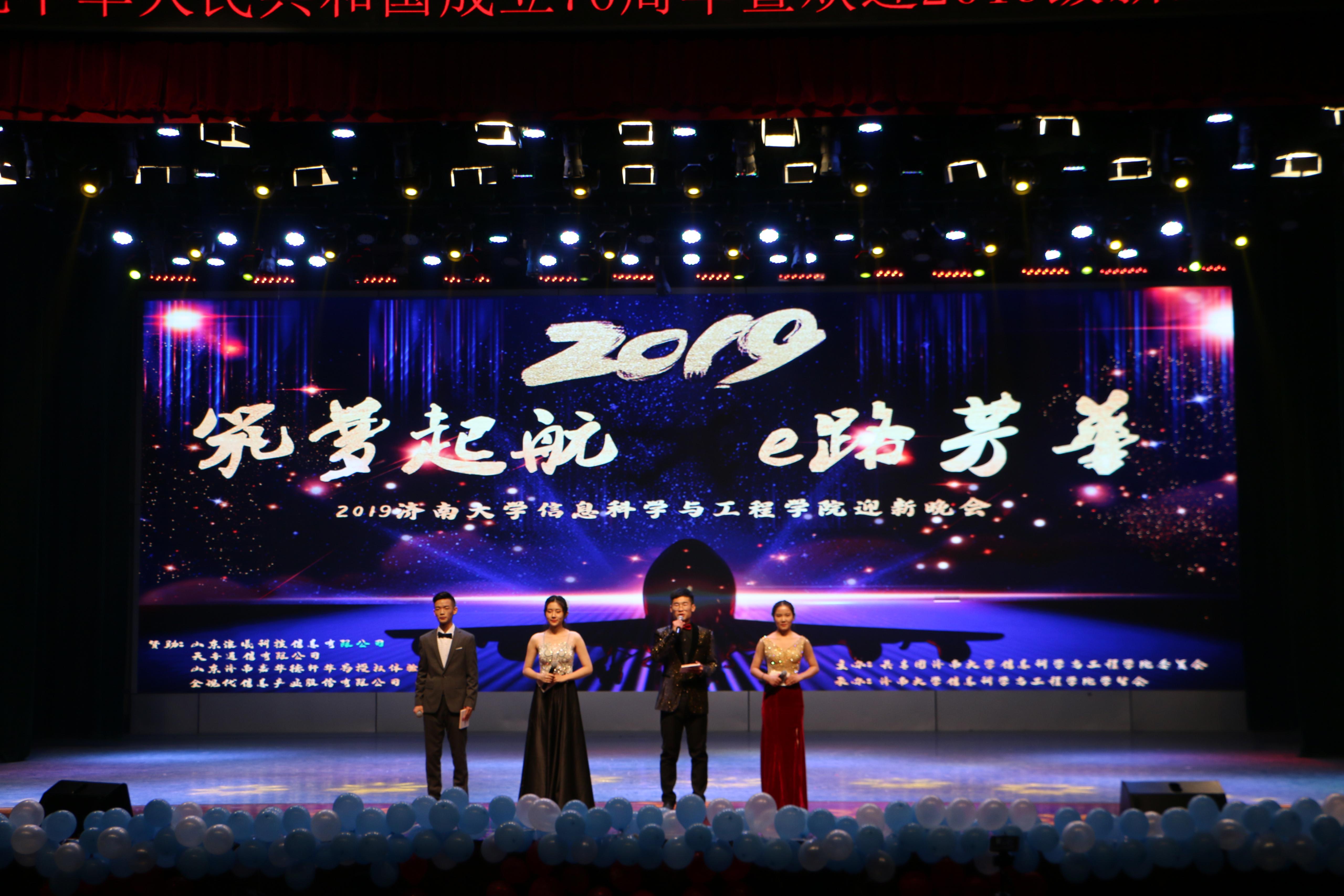 2019年12月8日,“筑梦起航,e路芳华”9227新葡的京集团热烈庆祝中华人民共和国成立70周年暨2019年迎新晚会在主校区大礼堂隆重举行,并获得广泛好评。本次晚会以飞机起航为主题,以创意门票、趣味开场视频的方式带领大家进入航班起航场景,祝愿信院学子满载梦想,一同飞向梦与远方。济南大学党委宣传部部长丛晓峰、济南大学党委学生工作部(处)部(处)长贾海宁、济南大学党委学生工作部(处)副部(处)长李荣光、济南大学团委副书记纪祥、信息学院党委书记邱鲁军、院长陈贞翔、正处级组织员季竹君、党委副书记、副院长刘颖超、副院长韩士元以及学院师生代表1000余人共同观看了本次晚会,并对本次晚会在宣传上的独特设计与精彩表演赞不绝口。晚会气氛热烈,掌声不断。