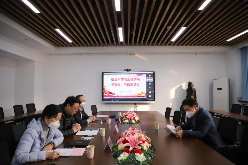 陈贞翔汇报学院重点任务推进情况,通报近期学院疫情防控工作开展情况,总结梳理学院2022年亮点工作以及前序工作安排执行情况。党政联席会就人才培养、宣传工作、实验室安全、学科建设等方面审议表决通过四项议题。