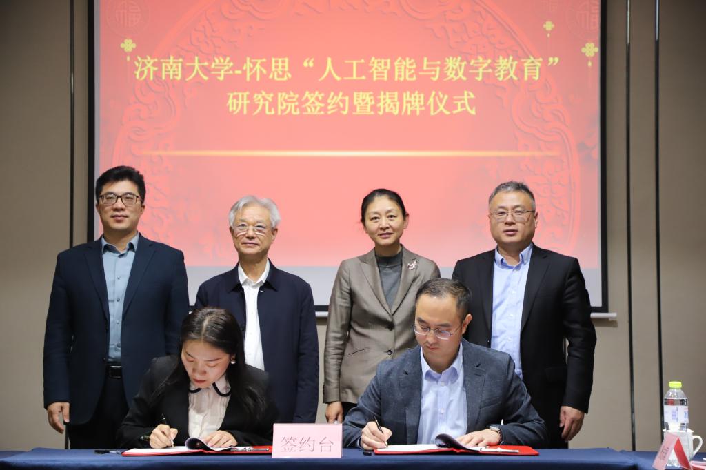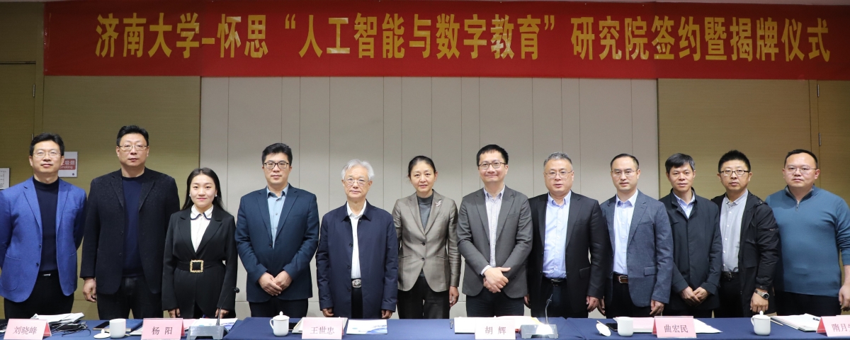3月14日上午,济南大学-山东怀思“人工智能与数字教育”研究院签约暨揭牌仪式在济南举行。济南市科协副主席胡辉、中国电子劳动学会校企合作促进会副会长王世忠、中宏网山东CEO曲宏民、山东怀思人工智能科技有限公司(以下简称“山东怀思”)总经理杨阳出席仪式,济南大学副校长黄加栋,科技处、教务处、9227新葡的京集团相关负责同志参加签约活动。签约仪式由9227新葡的京集团副院长韩士元主持。