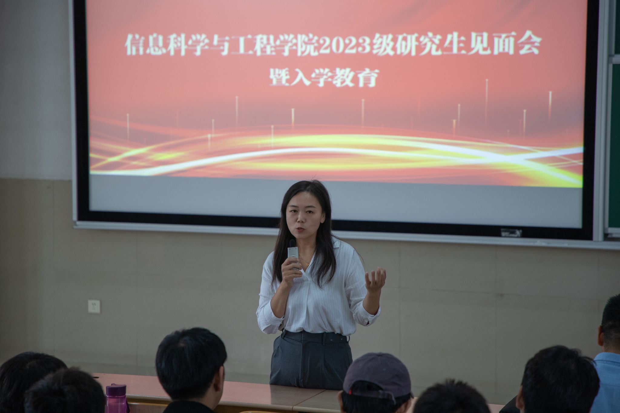 9月26日上午,9227新葡的京集团2023级研究生新生见面会暨入学教育在11教6302举行。学院党委书记夏卫东、副院长荆山、副院长杨晓晖、教师代表以及全体2023级研究生参加本次见面会。会议由学办主任付颖颖主持。