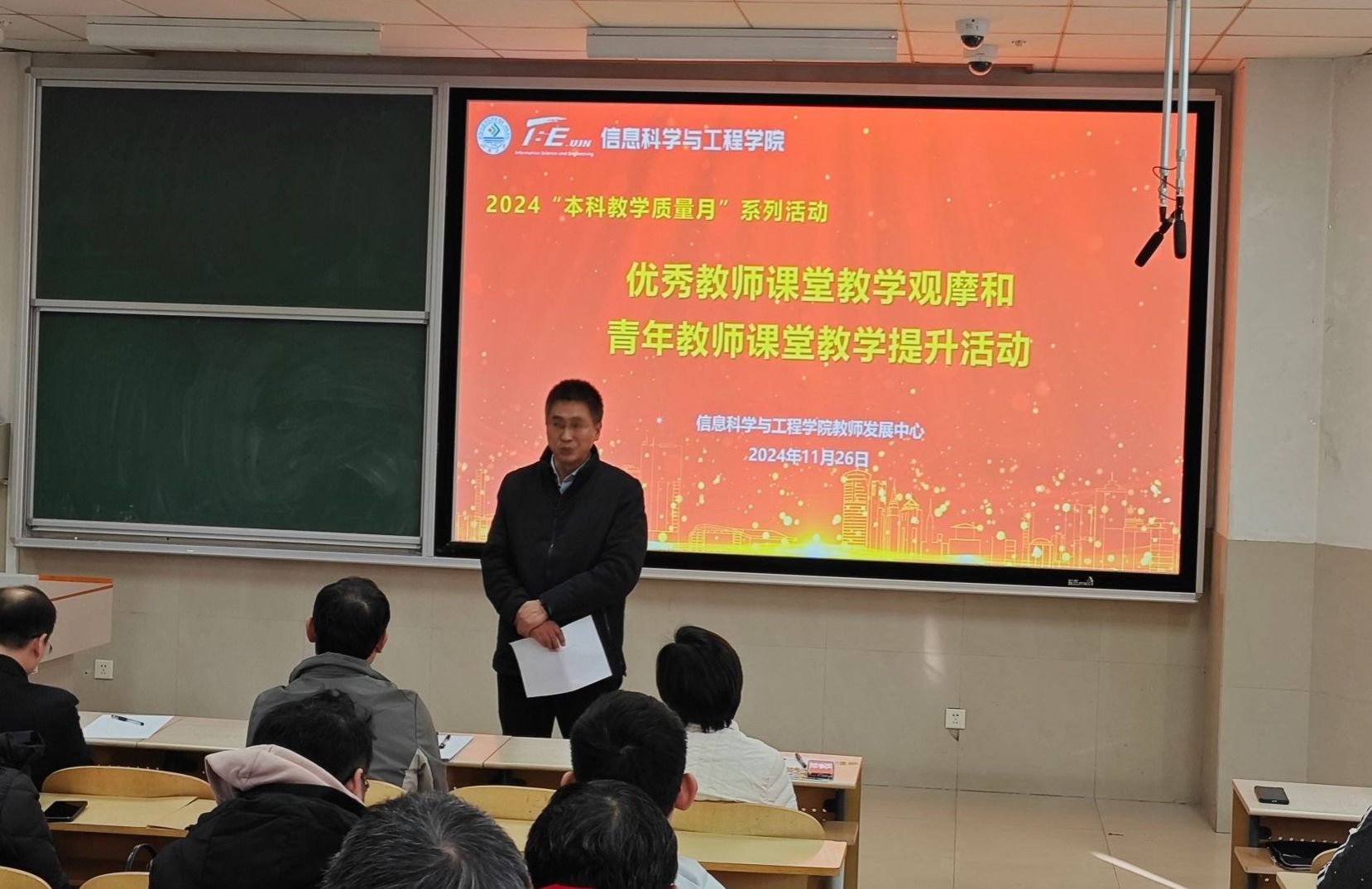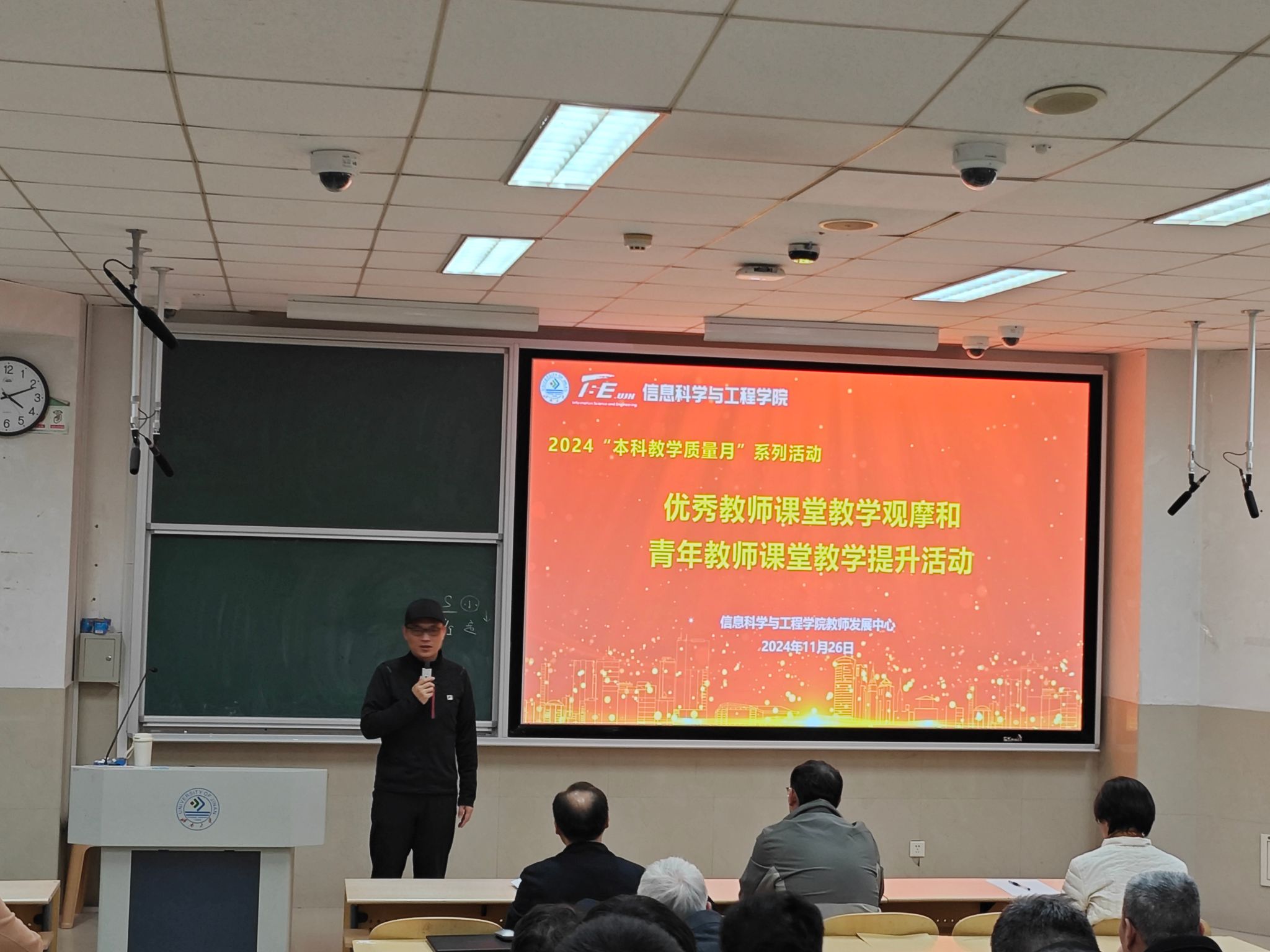 为提升学院全体专任教师教学能力和教学水平,强化优秀教师对青年教师在课堂教学上的传帮带作用,11月26日,9227新葡的京集团在11教3101举行了2024年 “教学质量月”系列活动——优秀教师课堂教学观摩和青年教师课堂教学提升活动,学院领导班子成员和全体专任教师近100人参加活动,活动由院长助理王晓芳主持。