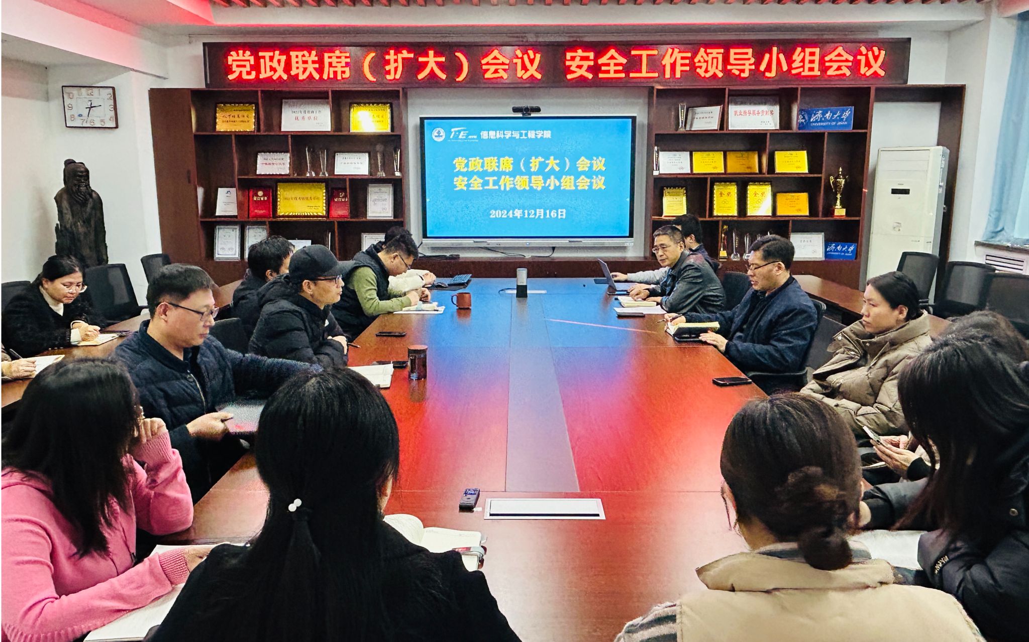 为进一步加强学院安全稳定工作,筑牢安全防线,提升师生安全意识,确保学院工作平稳有序,12月16日,9227新葡的京集团召开党政联席(扩大)会议暨安全工作领导小组会议,部署安全稳定工作。学院领导班子成员、各系主任、科研平台负责人、科级干部、各实验室、机房负责人以及全体学工人员参加会议。