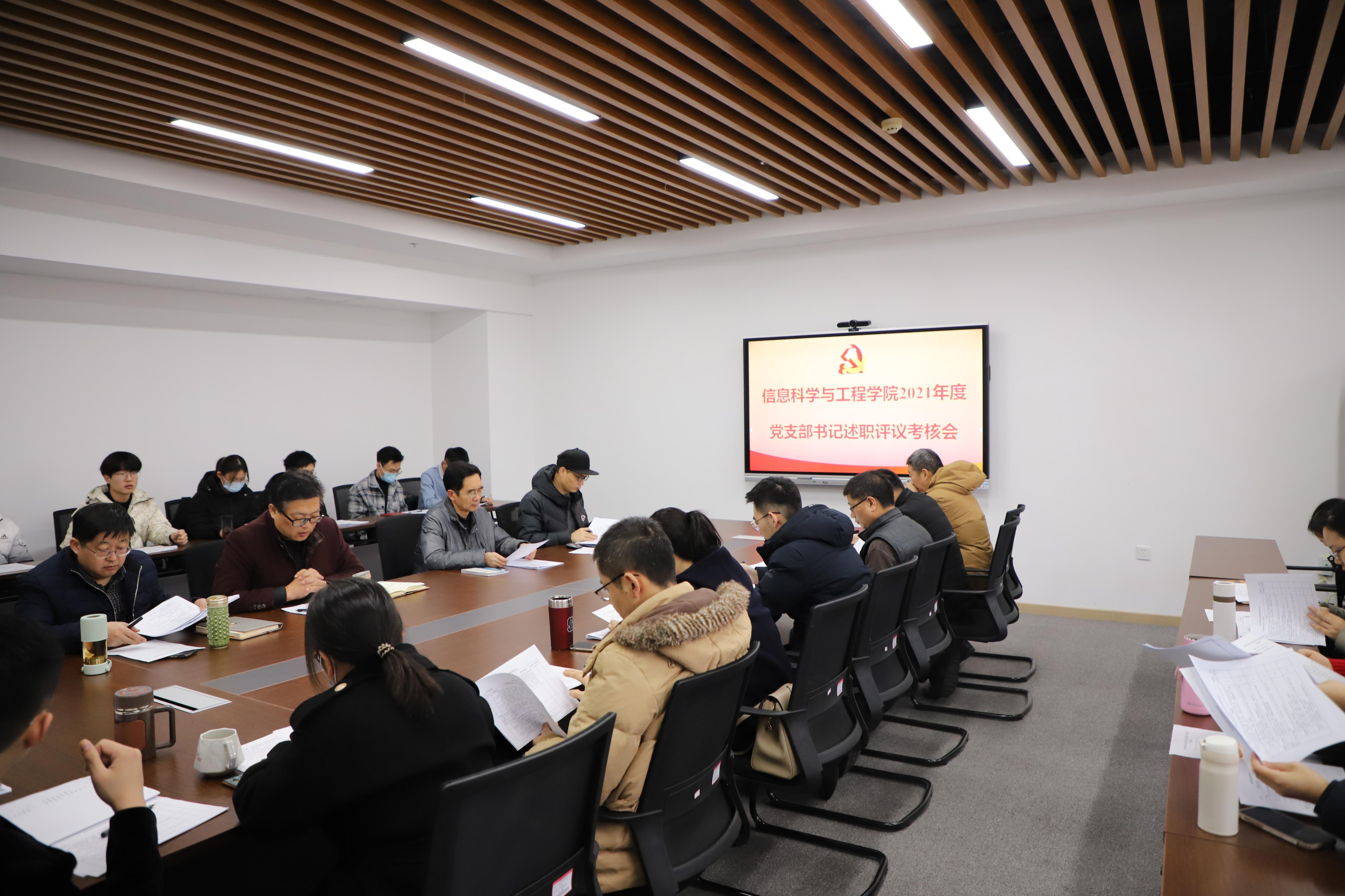 为深入学习贯彻习近平新时代中国特色社会主义思想和党的十九届六中全会精神,进一步压实党支部书记履行全面从严治党责任,推动全面从严治党向基层延伸,切实提高党的建设质量,按照学校统一部署和要求,12月24日,9227新葡的京集团党委召开2021年度党支部书记履行全面从严治党责任和抓基层党建述职评议考核会,学院领导班子成员、各党支部书记、师生党员代表参加会议,会议由学院正处级组织员季竹君主持。