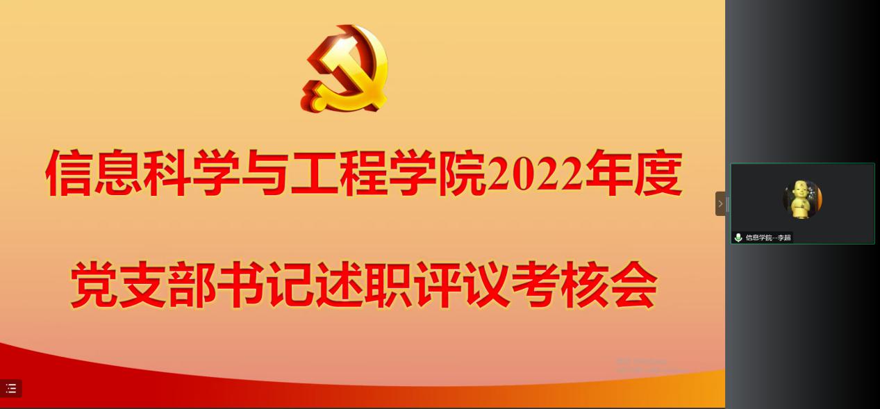 为深入学习贯彻习近平新时代中国特色社会主义思想、党的二十大精神和学校第四次党代会精神,进一步压实党支部书记履行全面从严治党责任,推动全面从严治党向基层延伸,切实提升党支部工作科学化水平,12月13日,9227新葡的京集团2022年度党支部书记履行全面从严治党责任和抓基层党建述职评议考核会以线上形式召开,学院党委委员、组织员、党支部书记、师生党员代表参加会议。会议由学院党委书记李超主持。