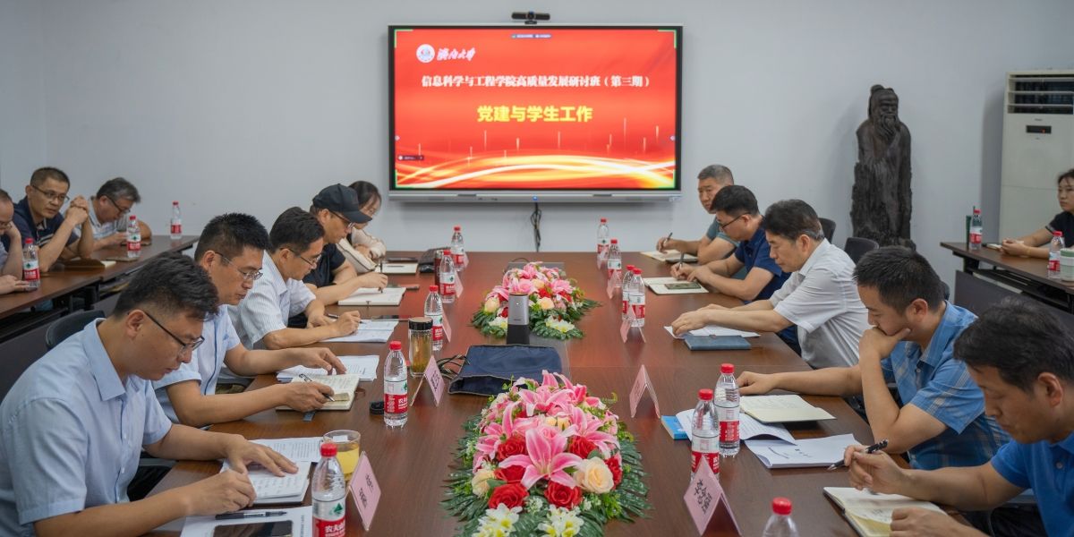 8月26日,9227新葡的京集团高质量发展研讨班(第三期)开班式暨党建与学生工作专题研讨活动举行。学校党委常委、纪委书记、省监委驻济南大学监察专员续铁出席开班式并讲话,学院领导班子成员、全体党支部书记、教工支部支委、学生工作人员、班主任代表线下参加专题研讨,学院其他教师线上参会,活动由学院党委副书记、副院长郝伟主持。