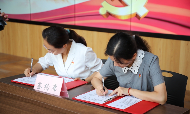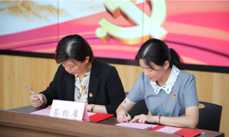 随后,学院党委副书记、副院长董晓慧与李迎签订《党建联建共建合作协议书》,李超和崔珉共同为“党建联建共建基地”揭牌。董晓慧与潘雅楠签订《大学生社会实践基地协议》,李超和田霖共同为“大学生社会实践基地”揭牌。