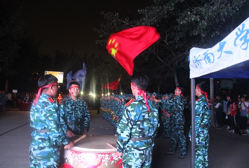 第一天的比赛可谓是惊心动魄,第一场就遇到强敌生命科学与技术学院,但我们的声势更浩大,声音更洪亮,鼓声更有节奏。我们的旗帜也随着节奏挥动不止,甚至有一根旗杆当场被摇断,但旗手临变不乱,即使用断了的旗杆,照样坚持跟着节奏快速舞动。最终大胜生命科学与技术学院。经过两场努力,我们成功挺进六强。