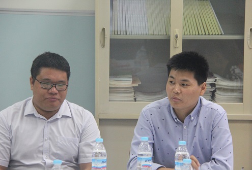 交流会开始,曲老师对材料学院的客人们表达了热切的关怀,接下来,介绍了自己组建管理服务中心的工作思路。接下来管理服务中心分管主席王同辉简单介绍了管理服务中心的下属部门和骨干成员后,由各个部门的部长依次上前具体介绍自己部门的主要工作和所举办的特色活动,尤其是历时两个月的“宿舍文明月”活动,让管理服务中心的“十百千计划”得以实施,也让整个学院的宿舍安全到达了新的高度。随后管理服务中心分管主席王同辉和徐奕瑶简明扼要地做了一下总结,其中所提到的“信息化”管理无疑是最大的亮点,建立一个学生查宿查课管理系统无疑更加方便同学们进一步了解自己的所属信息。“来到这真的就像回家一样”。徐志鹏老师如是说:“我作为原信息学院学生,此次重回信院,取经问道。是希望我们可以接受一些新颖的方式去完善我们自己的纪检中心,也希望信息学院的各位同仁们可以多多帮助我们。”