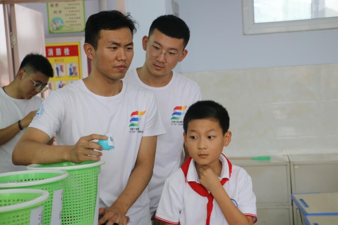 现如今,垃圾堆积如山,外卖的层层餐盒、快递的过度包装,城市已经被垃圾围城,解决垃圾处理问题刻不容缓。今天,我们“青春视角 美丽中国”济南大学信息学院暑期社会实践团今天来到了日照市五莲县槎河村槎河小学,向小朋友们讲解垃圾分类知识,希望在他们纯洁的心灵里种下垃圾分类、保护环境、节约资源的种子。我们先讲解了垃圾分类的现状和必要性,小朋友们都表现出了浓厚的兴趣。之后我们举例了垃圾的类别,告诉小朋友们如何分辨各种垃圾,然后我们拿出事先准备好的海洋球,海洋球上贴好了垃圾的名称代表各种垃圾,让小朋友们尝试着将海洋球投入不同的垃圾桶,模拟垃圾分类,小朋友们都圆满的完成啦,我们也感到非常自豪。