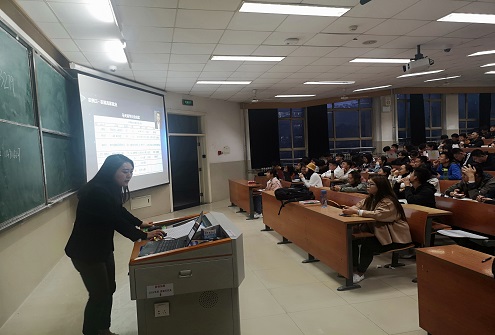 出席讲座的牛囡囡经理从事IT行业已有八年,积攒了丰富的工作经验,对相关产业的了解较为透彻,她为同学们分析了IT行业的人才需求、核心技术、发展方向等现状,结合就业形势对学生毕业后的择业提出建议。随后,计数1701班梁凯祥与大家分享了学习和科创经验。梁凯祥同学担任计数1701班班长,荣获多类奖项,被评为优秀团员,他展示了两年来获得的科创荣誉,向同学们讲述了他大一至今从确立大学目标到获得成果的整个过程,解答了大家在学习生活方面的困扰,帮助同学们找到适合自己的道路,在短暂而宝贵的大学时光里磨练自我,成长为社会需要的黄金人才。
