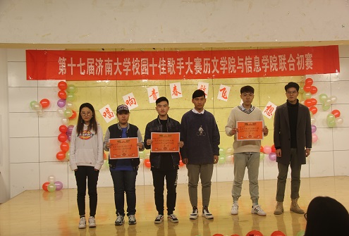 本次大赛由两轮比赛构成:第一轮选出十位选手;第二轮由第一轮选出的十名选手角逐一二三等奖。伴随着主持人激情的开场白,十佳歌手大赛正式拉开帷幕,选手们依次上台展示自己的歌喉。经过评委们的专业评判,十位选手脱颖而出,荣获“信息学院十佳歌手”称号。在第二轮比赛中,一首首或高亢、或婉转的歌曲呈现在观众面前;舞台上的选手各具特色,有怀抱吉他的弹唱者,有声音极具穿透力的灵魂歌手,有载歌载舞的全情投入者,也有渐入佳境的初次登台者。他们通过歌声尽情展示自己,用青春和梦想的声音感染着现场的每一位观众,舞台下的观众听得如痴如醉,专注投入,享受着这一场视听盛宴。经过激烈的比拼,2017级吴昊,2016级徐奕瑶在比赛中力压群雄,摘得桂冠。另外王馨怡等三位同学荣获二等奖,张航等五位同学荣获三等奖。