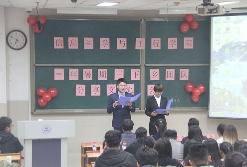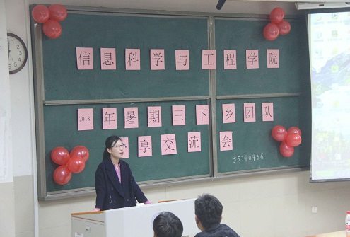 秋风萧瑟,层林尽染。2018年10月31日,由9227新葡的京集团团建部组织的2018年暑期“三下乡”团队分享交流会在11教1101如期举行。信息学院团委书记崔艺馨老师,信息学院学生会主席团及各实践团队队长出席了本次会议。