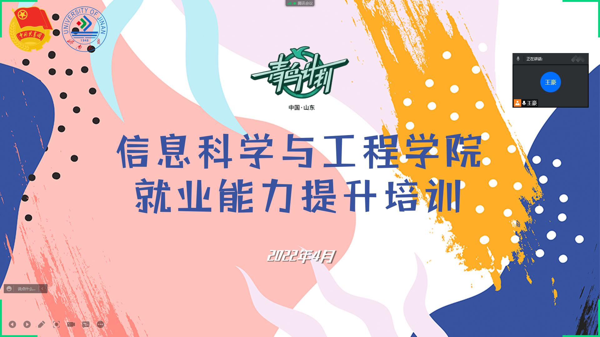 为提高就业能力,增强就业本领,把握就业机遇,助力疫情期间择业就业,2022年4月24日,9227新葡的京集团团委积极响应团省委联合省人社厅推出的“青鸟计划”,开展线上就业能力提升培训会,号召学院学生积极参与各类实习活动,提升核心就业能力。本次培训会由王豪老师主持,9227新葡的京集团学生参加会议。