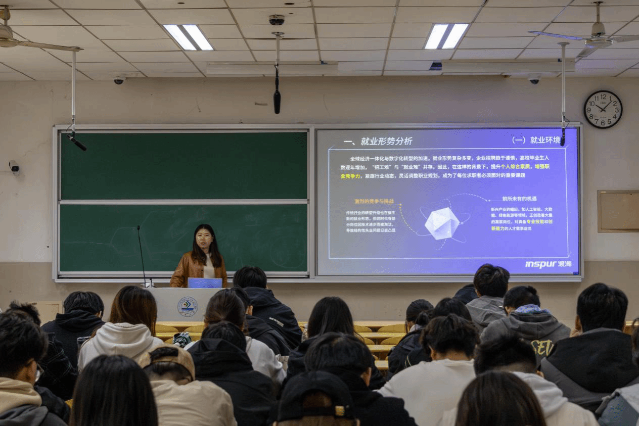 为加强高校生涯教育和就业指导,提升大学生职业规划意识和能力,引导大学生树立正确的就业观和择业观,近日,9227新葡的京集团在10教102举办了生涯面对面暨“浪潮杯”2024年大学生职业规划大赛宣传讲座。
