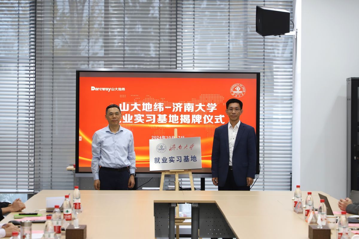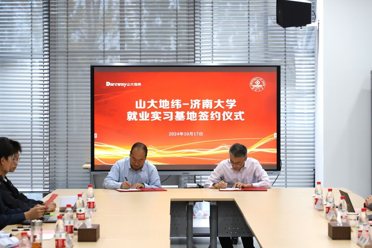 签约仪式上,济南大学党委学生工作部(处)副部(处)长董俊杰代表学校与山大地纬软件股份有限公司副总裁徐喆签订《毕业生就业实习基地协议》,李强和李庆忠共同为“济南大学就业实习基地”揭牌。