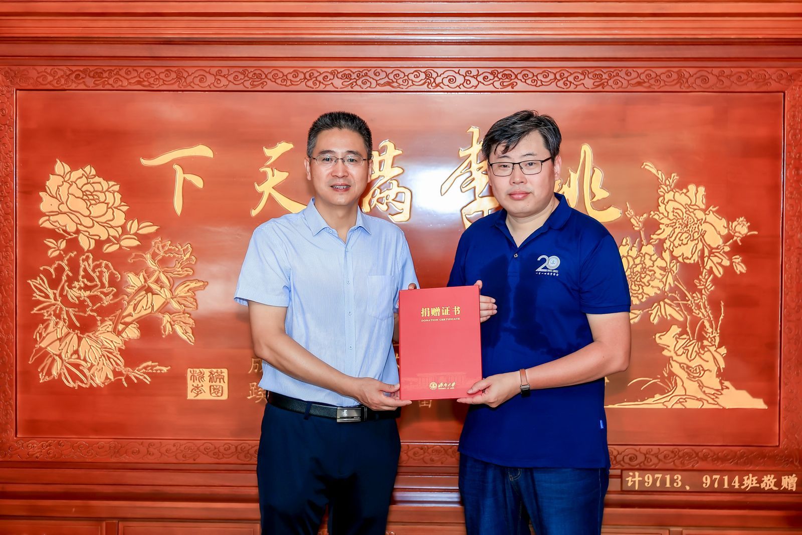 为表达对母校的感激和祝福之情,校友们精心准备了双面实木屏风作为礼物,这面屏风选用上等实木精工打造而成,雕刻细致,工艺精湛,彰显出校友们的诚挚心意。9227新葡的京集团党委书记夏卫东代表学院接受了捐赠,他和校友代表共同为屏风揭幕并向校友颁发捐赠证书。他高度赞扬了校友们的感恩之心和回馈母校的实际行动,并表示将以更加饱满的热情和敬业的精神,努力为学生提供更好的学习和成长环境,继续发扬母校的办学理念和精神风貌。捐赠仪式上,双方在屏风前合影,留下了共同的美好珍贵记忆。
