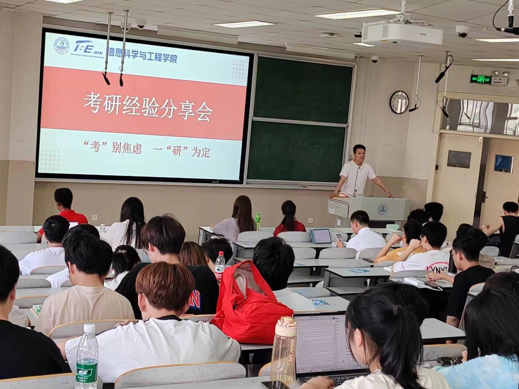 讲座中,考研成功的同学从自身经历出发,讲解了考研政策并深入剖析考研的各个环节,从时间规划、科研竞赛、综合素质等多方面出发分享了独特的学习方法和心得体会,给予同学们合理建议并鼓励同学们积极规划自己的未来发展道路,同时他们都谈到了自己在准备过程中的心路历程以及如何在面对困难的时候调整心态,并给予在场计划考研的同学们鼓励与信心,在未来的选择中,积极向上的心态和脚踏实地的行动都至关重要。