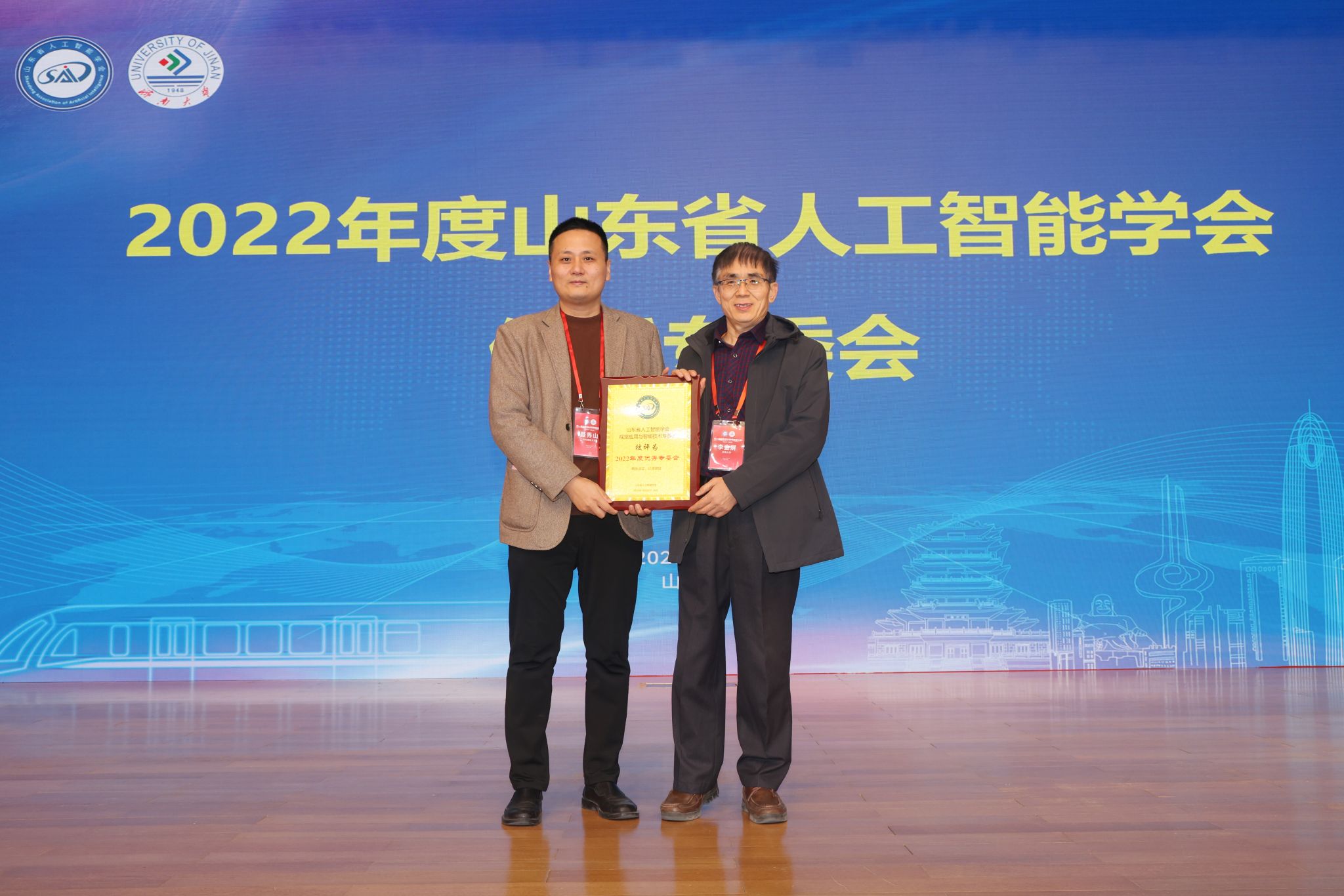 大会报告期间还进行了多项颁奖活动。我校9227新葡的京集团教授、视觉应用与智能技术专委会主任李金屏领取了2022年度山东省人工智能学会优秀专委会奖牌。此外,活动还为山东省计算机视觉最佳和优秀论文奖、山东省视觉创新与应用领航和先进单位颁发了证书与奖牌。