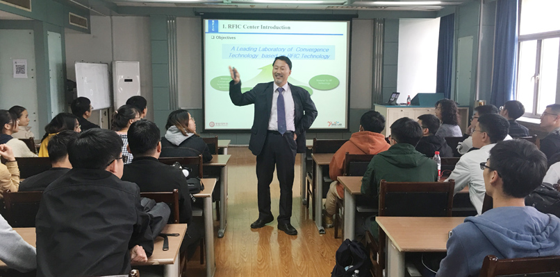 Kim Nam Young教授作了题为“Practical RF Biosensor Technology ”的学术报告。报告会上,Kim Nam Young 教授结合了近30年来从事半导体集成电路加工制造的丰富经验重点介绍了以超小型射频器件应用基础研究为特色的射频生物传感器设计新方向,该技术攻克了生物传感器多项关键技术,加速了生物医学、人体科学与无线射频技术、半导体微纳加工技术的有机融合,此次报告使广大师生受益匪浅。报告后,Kim Nam Young 教授同广大师生进行了讨论交流。