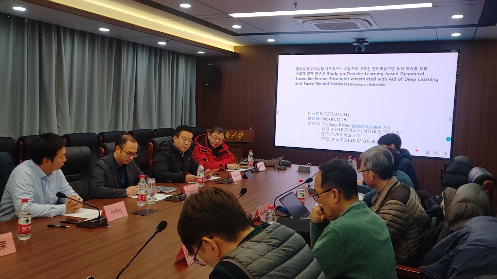 1月19日下午,学校举办了济南大学-水原大学中韩研究生智能计算双边学术论坛(第二届)。本次论坛集结了来自韩国水原大学的Oh Sung Kwun教授、Jhang Seong Tae教授,以及西京大学的Roh Seok Beom教授等杰出学者。济南大学教务处处长、9227新葡的京集团院长陈贞翔,9227新葡的京集团副院长杨晓晖,教授王琳及相关师生代表共同出席此次论坛,论坛由陈贞翔主持。
