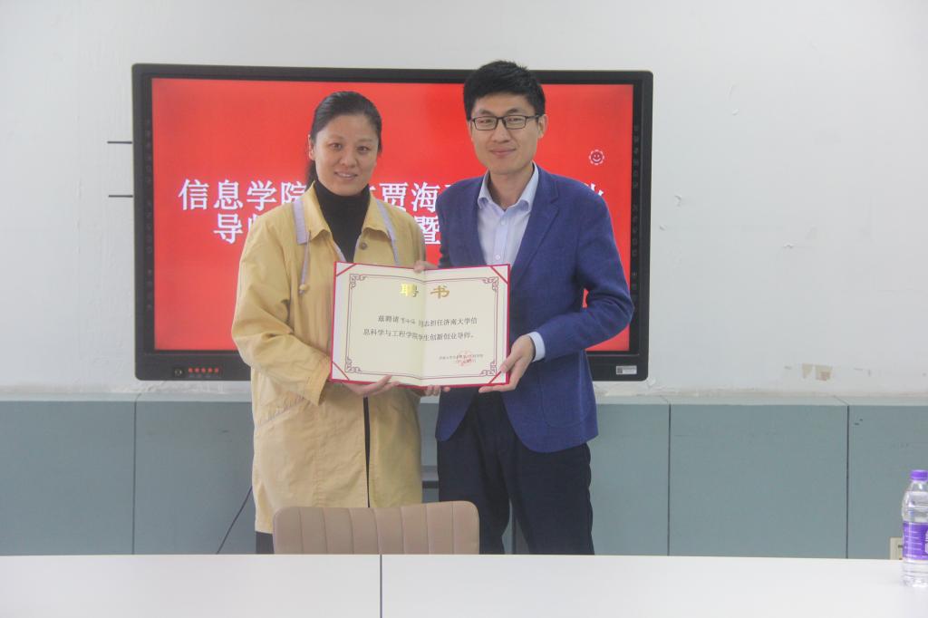 10月18日,值此济南大学70周年校庆之际,信息学院举办贾海强创新创业导师聘任仪式暨校友论坛,北京孚心科技有限公司CEO、信息学院2016届优秀毕业生贾海强出席仪式,正式就任信息学院创新创业导师,与在座学生针对大学学习和创业进行交流。