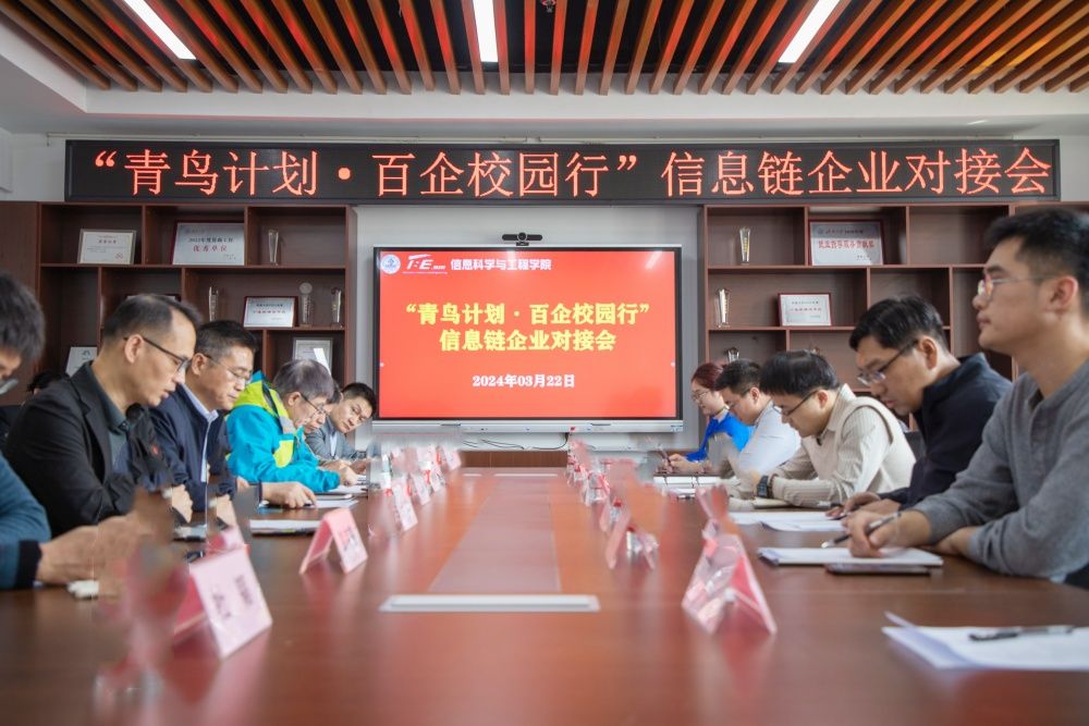 为共同探讨解决行业发展难题,推动校企信息精准对接,促进产学研深度融合和科技成果转化,“青鸟计划·百企校园行”信息链校企合作对接会于下午2点分别在第十二教学楼704和709会议室举行。本次会议邀请了13家知名企业相关负责人进行洽谈交流,学院40余位科研骨干教师参会。会议分别由学院副院长荆山、杨晓晖主持。