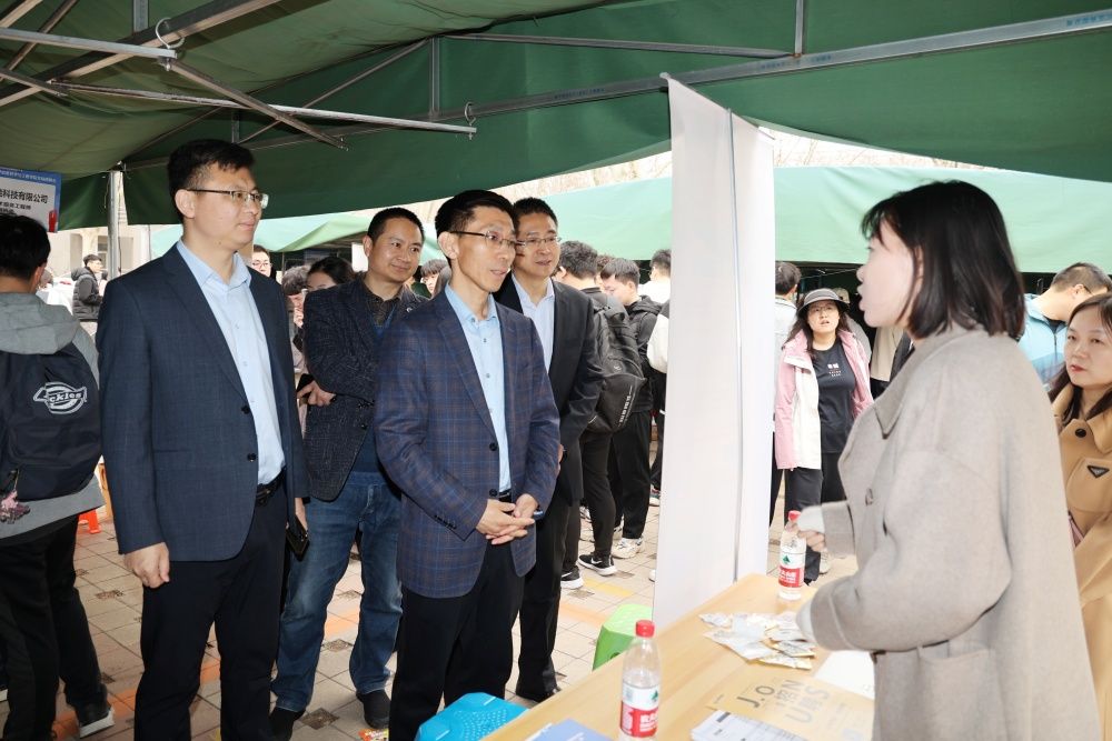 招聘会现场,李强一行与参会单位和求职学生亲切交流,听取用人单位对我校人才培养、就业工作的意见建议,深入了解用人单位发展状况、人才需求情况,询问关怀毕业生的就业意向与求职进展。同时,李强向一直以来关心和支持济南大学教育教学事业发展的社会各界人士表示衷心的感谢,并勉励现场求职毕业生树立正确的择业观,积极响应国家号召,服务国家战略,到祖国需要的地方建功立业。